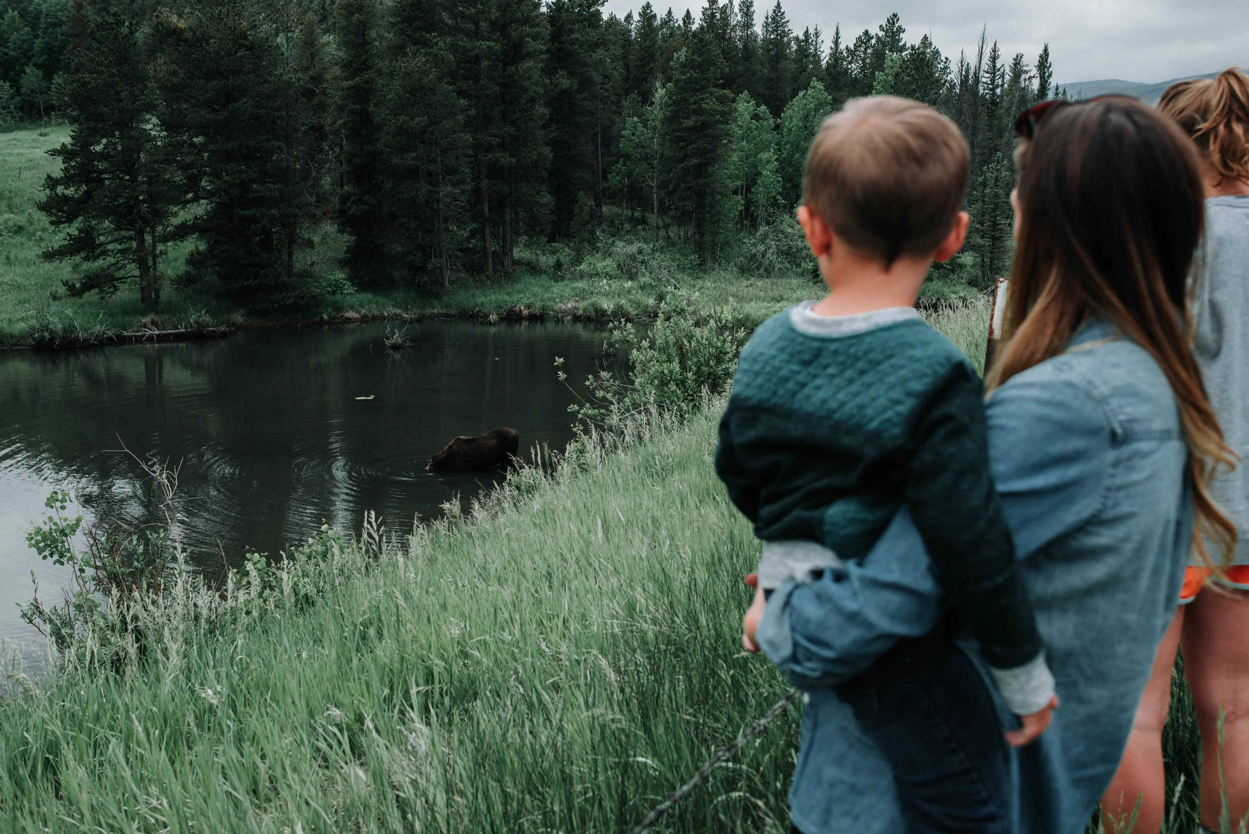 When driving up through Rocky Mountain National Park you can drive the Peak to Peak Highway. I've had the opportunity to do this twice now! This time was far more exciting because we saw a large group of people pulled off to the side of the road and we said, "let's see what they're looking at!" So we stopped and we got to see a moose with its baby!